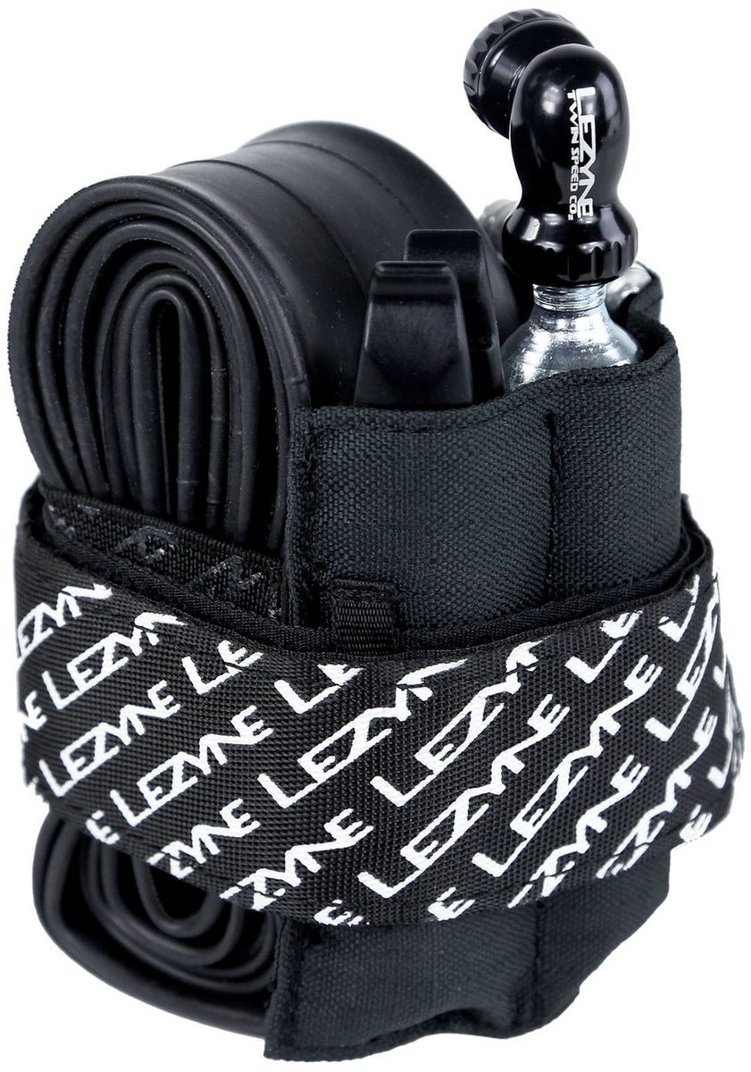 Lightweight, versatile cycling organizer strap quickly and securely mounts to frame or seat post. Three labeled compartments keeps gear and tools organized and secure on the roughest trails. Perfect for carrying tire repair items on bikes with limited space. Durable, high-quality materials including polyester, neoprene, and rubberized elastics for added grip. Strap is capable of holding up to one 25g CO2 cartridge and a 29” mountain bike tube, plus a small multi tool and tire levers. Tools not included. Send it!