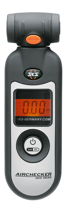 The Airchecker from SKS is a fast and easy way to check your tire pressure. The swiveling head makes it a snap to reach your presta or schrader valve stem at any angle, and the backlit display with extra-large LED digits is always easy to read. This gauge measures up to 144 psi and reads in 10ths of psi.