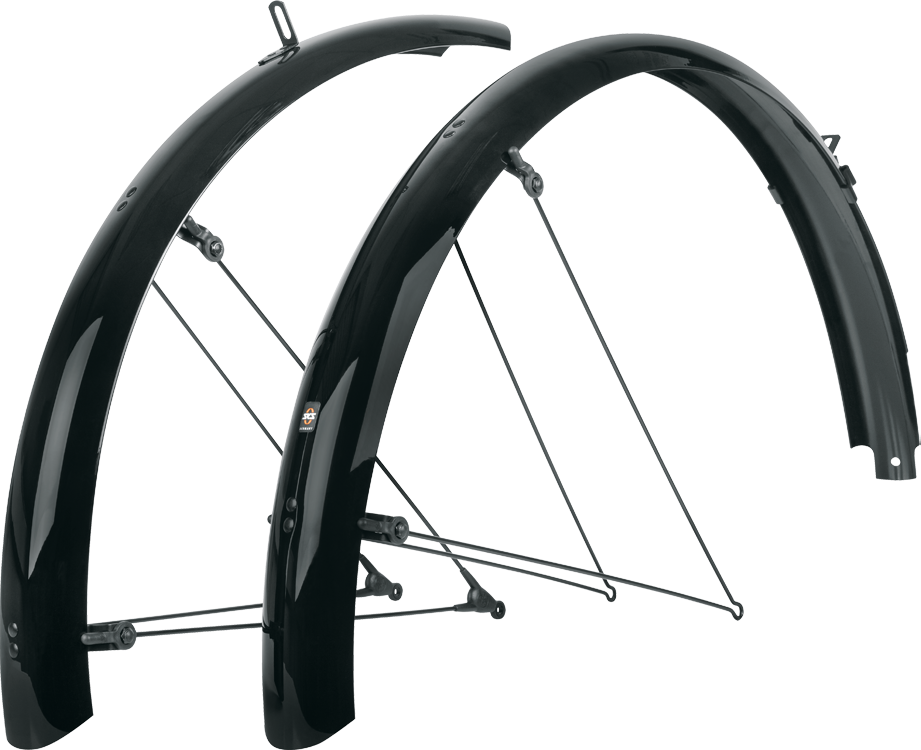 A really brilliant performance! The SKS BLUEMELS BASIC mudguard set not only integrates perfectly on the bike, but also reliably protects against dirt and splash water. Thanks to the flexible sandwich construction, in which extremely fine aluminum strips are embedded in a plastic coating, the fenders are extremely robust, rigid, and protected against corrosion.