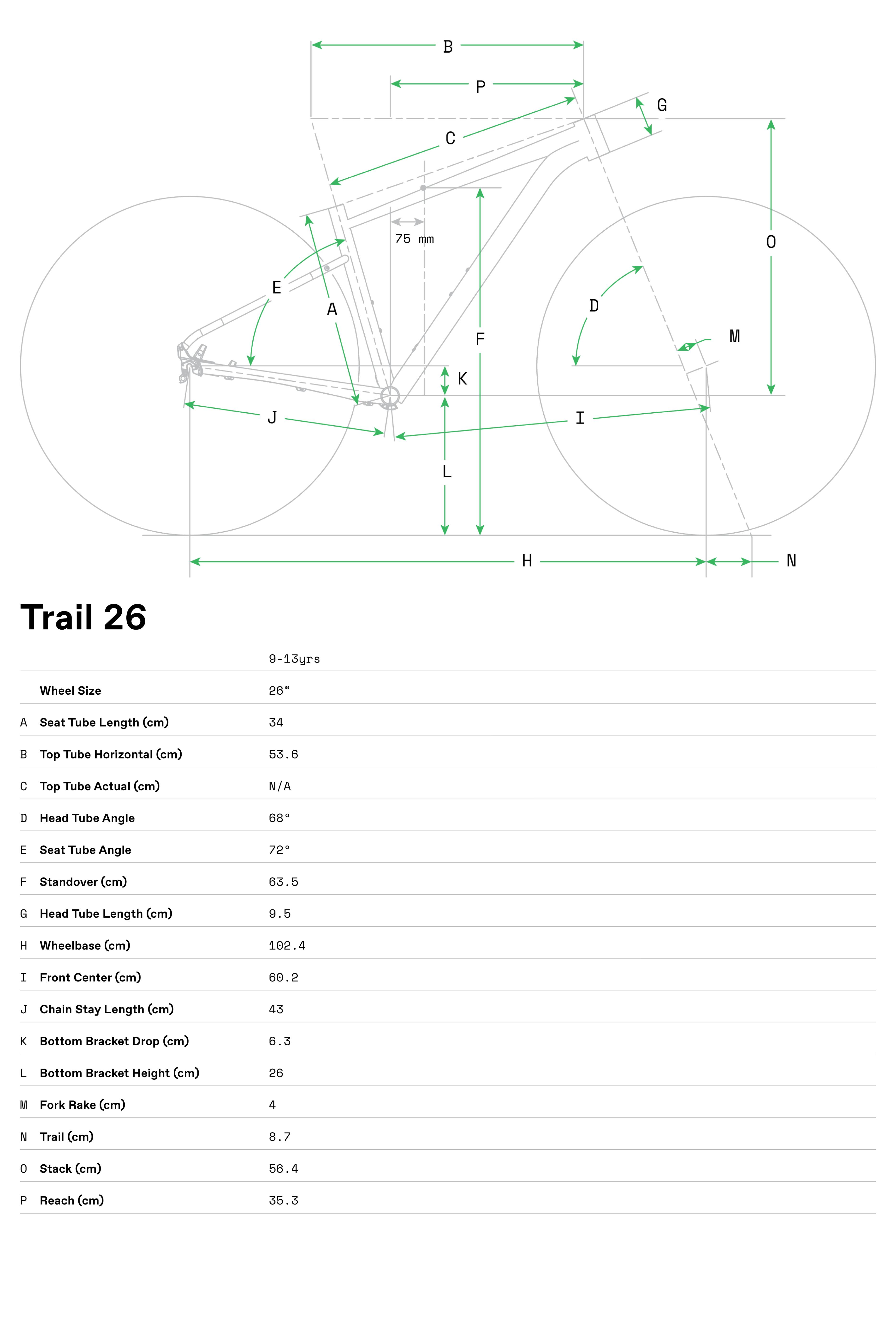 Trail 26 is built for progressing riders ages 9 to 13 between 4’8” and 5’ - too big for kids’ bikes, but not quite big enough for adult bikes. Take it to the next level on the bike path or grow new skills on the dirt.