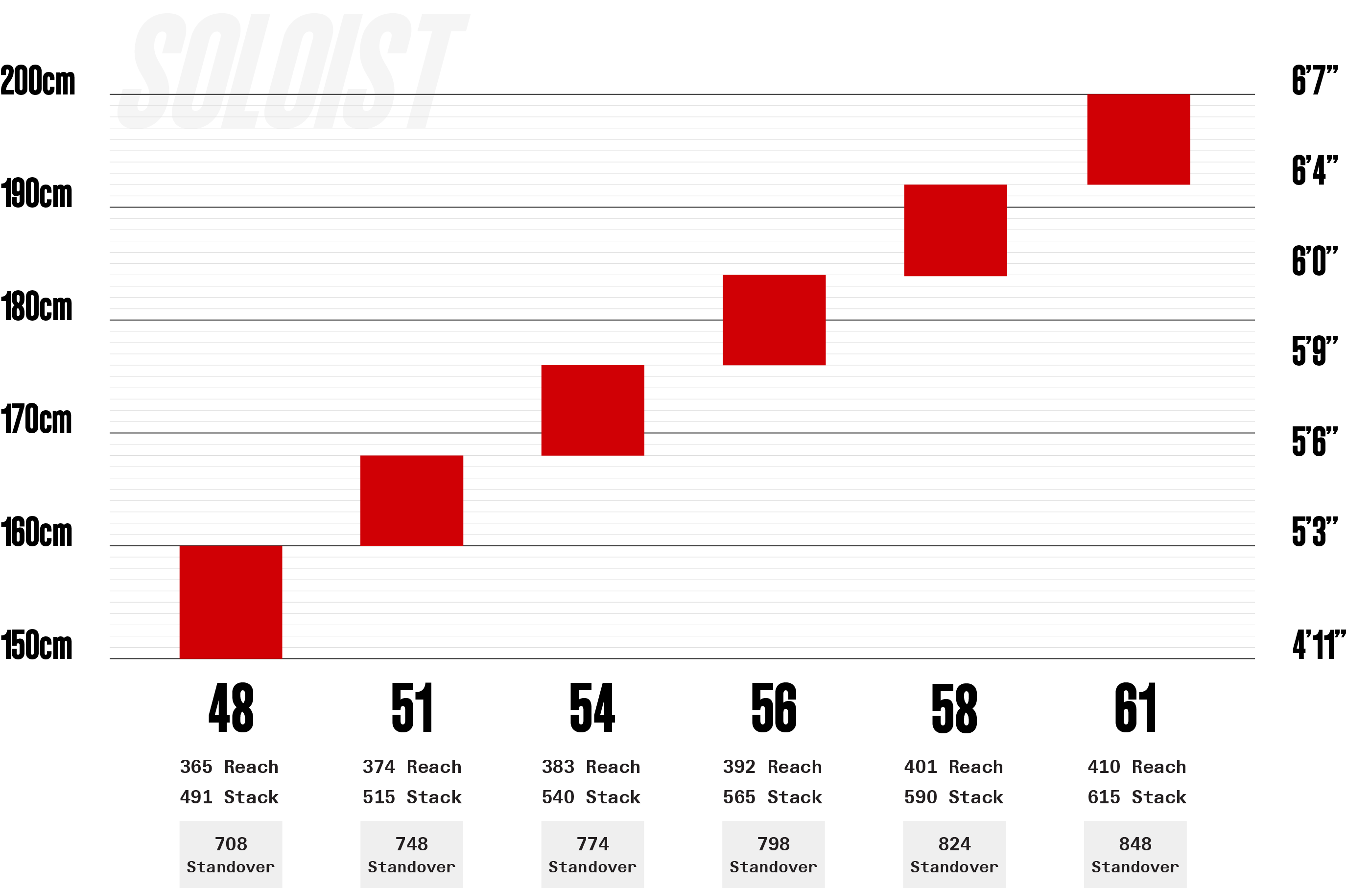 We took the handling geometry for the Soloist directly from R5. The R5 is beloved by pros and amateurs alike for its poise, stability, and precision when that killer climb turns into an even more killer descent. Soloist benefits from our decades of race bike geometry development, and comes out of the gate ready to go.