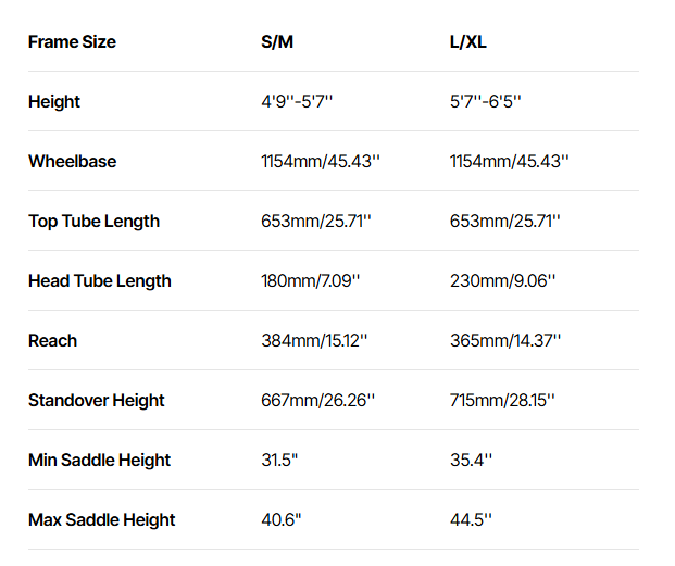 | Front Wheel Center | 670mm/26.38'' |