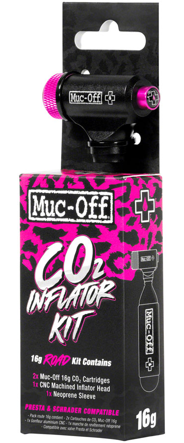 The Muc-Off Inflator kits help riders quickly inflate their tires and quickly get back to riding in no time. Each kit contains 2x cartridges, 1x compact and durable CNC-machined inflator head with soft-touch press down button which easily controls CO2 release. Dual head nozzle compatible with Presta and Schrader valves and 1x neoprene sleeve to help avoid freeze burn.