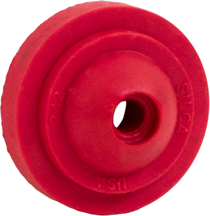 The Iconic SILCA 24.1 gasket is the heart of the press-on Presta chuck. The current 242 gasket utilizes a high tech and very red, fully synthetic elastomer base material.